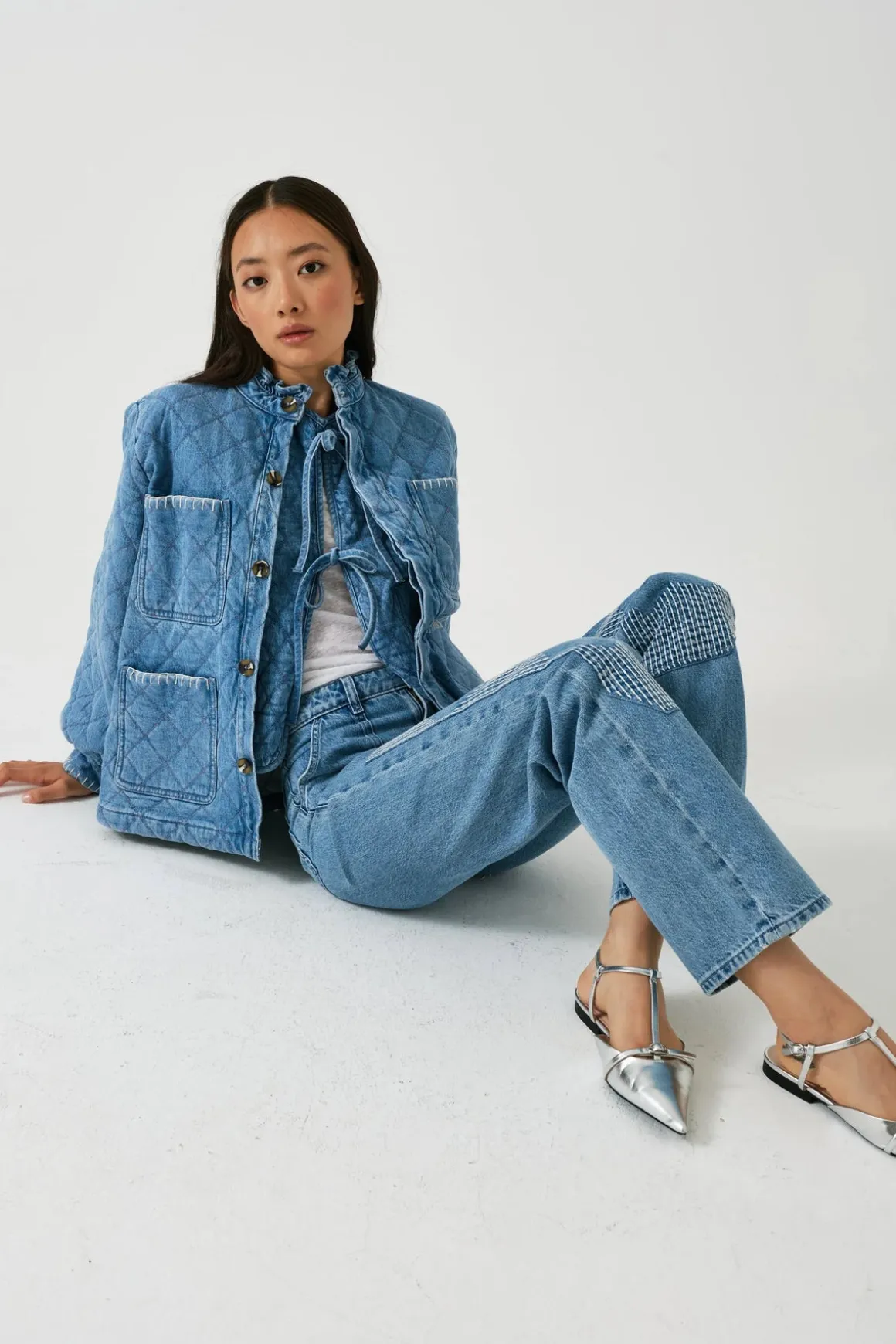 Elevate your style with our Su0026amp;M Quilted Pablo Jacket! The loose fitting body and relaxed fit provide both comfort and a flattering silhouette. With its soft balloon shaping sleeve and frill collar, this jacket adds a touch of elegance to any outfit. Perfect for a cozy yet chic look.