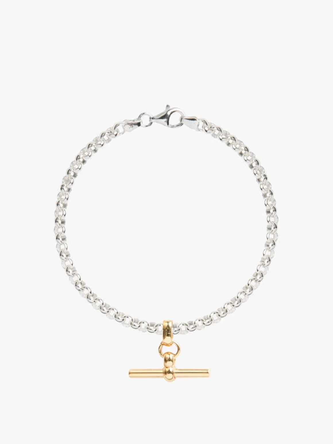 - Gold plated t-bar on a sterling silver belcher chain.