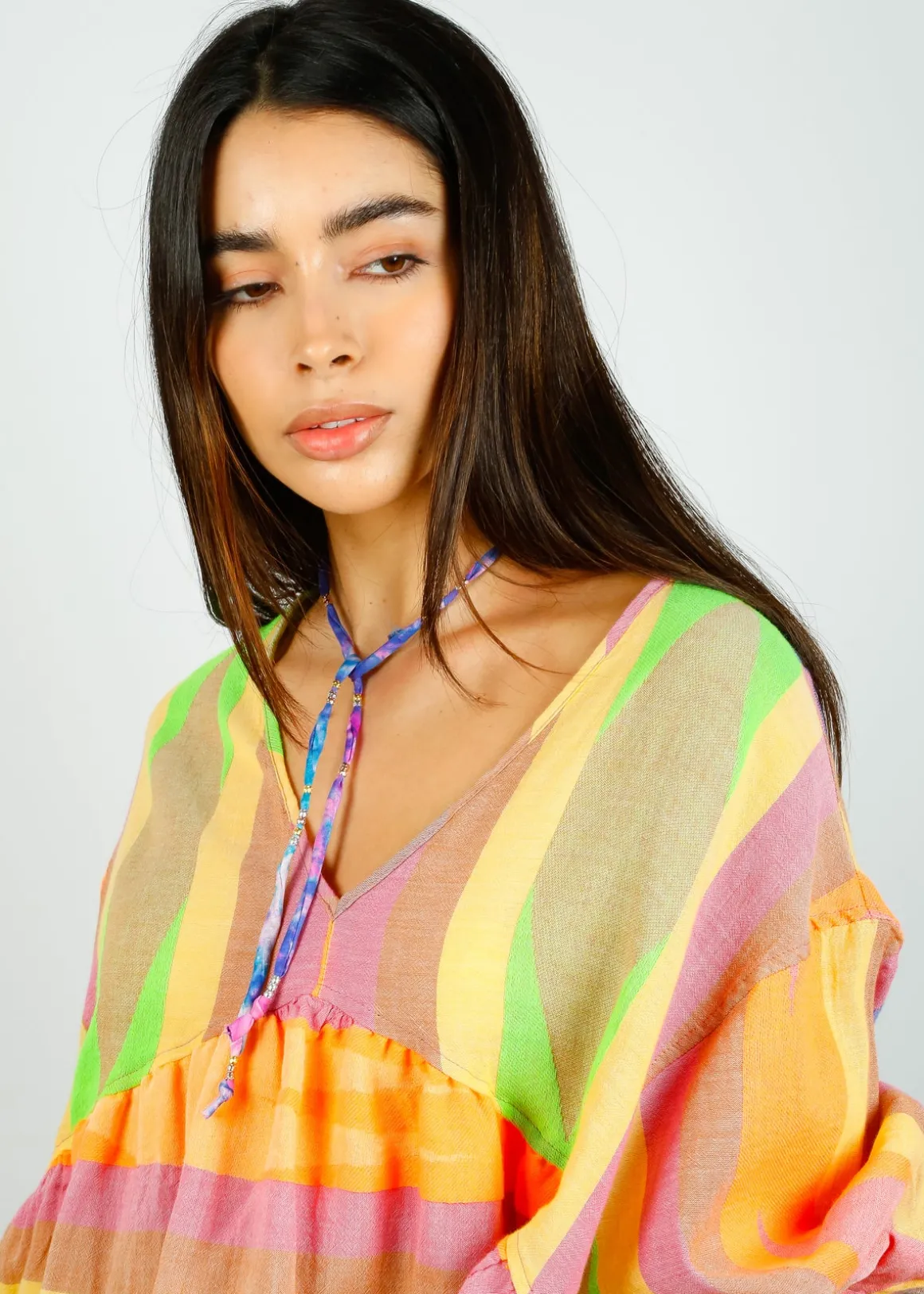 The Victoria Leivissa Sari Link Bracelet in green is a fashionable accessory crafted with Indian traditional sari ribbons, featuring 30 hammered beads that can be worn as a bracelet or necklace. Each bead is skilfully hand-crafted to maximum effect, making this an eye-catching and stylish fashion accessory.